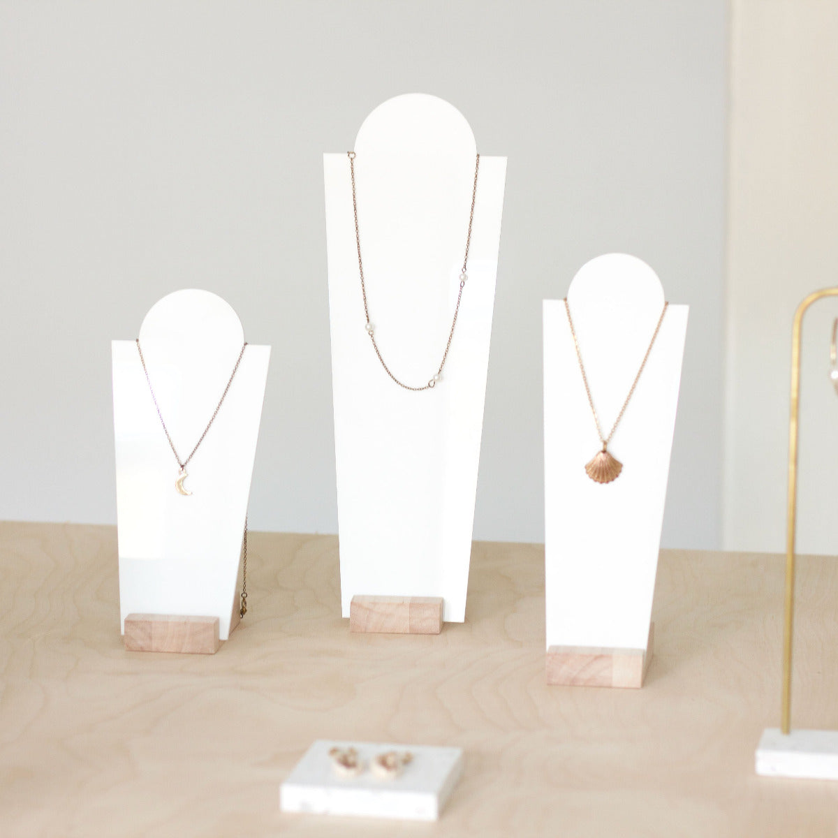 Notre porte-collier OLLIE expose facilement vos colliers, chaînes, colliers 3 rangs ou pendentifs. Sa structure en forme de buste est idéale pour présenter 1 bijou ou pour créer des combinaisons.